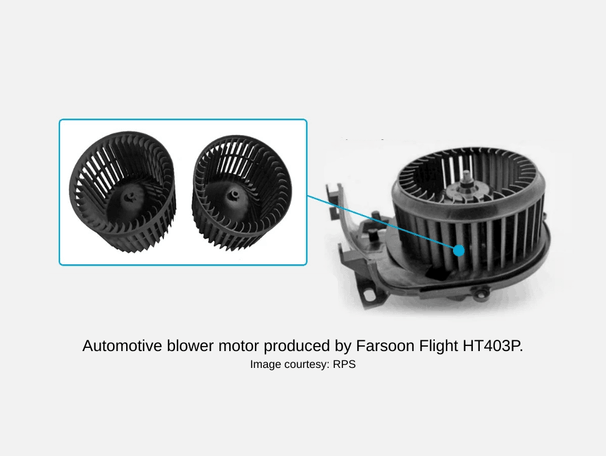 The development of automotive functional parts, such as HVAC blower motor assemblies, has become increasingly design-intensive, requiring dimensional accuracy, impact resistance, and thermal stability. Traditional manufacturing, such as 5-axis CNC machining and sand casting, has long lead times, high tooling costs, and minimum-batch constraints. Small series customisation became financially inefficient and slowed design iteration cycles.